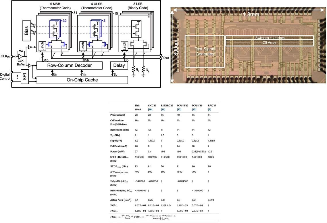 2GS/s 12bit 电流舵型DAC,一种采用28nm CMOS工艺实现的12位2GS/s电流舵型数模转换器(DAC),通过5-4-3分段结构和分层开关方案提升线性度,无需校准达到80dB SFDR。
